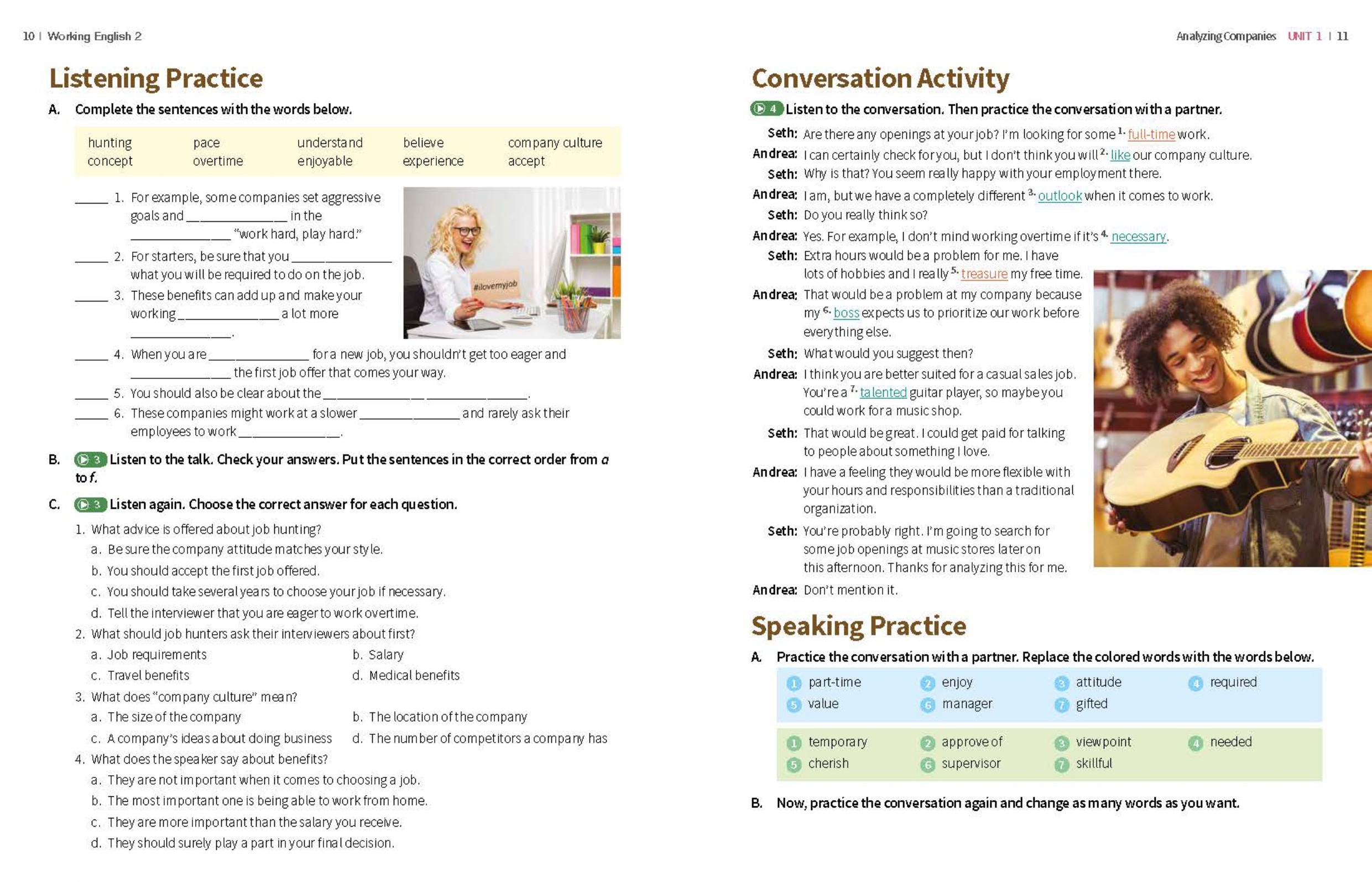 - Features workplace and casual dialogues between native speakers in the workplace
