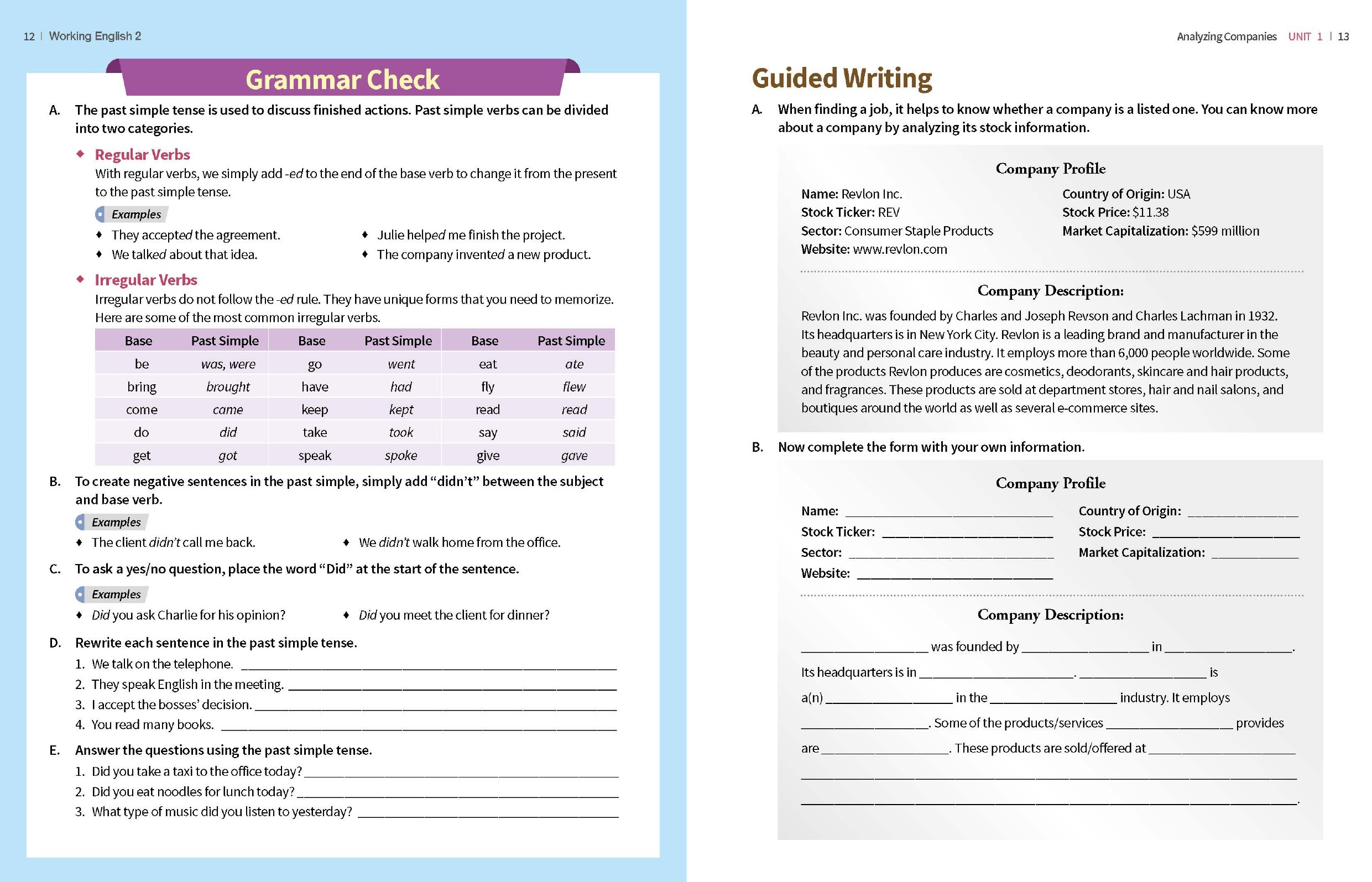 - Guided assignments that give students practice writing emails, filling in paperwork, and completing other writing tasks that are required in professional and casual settings.