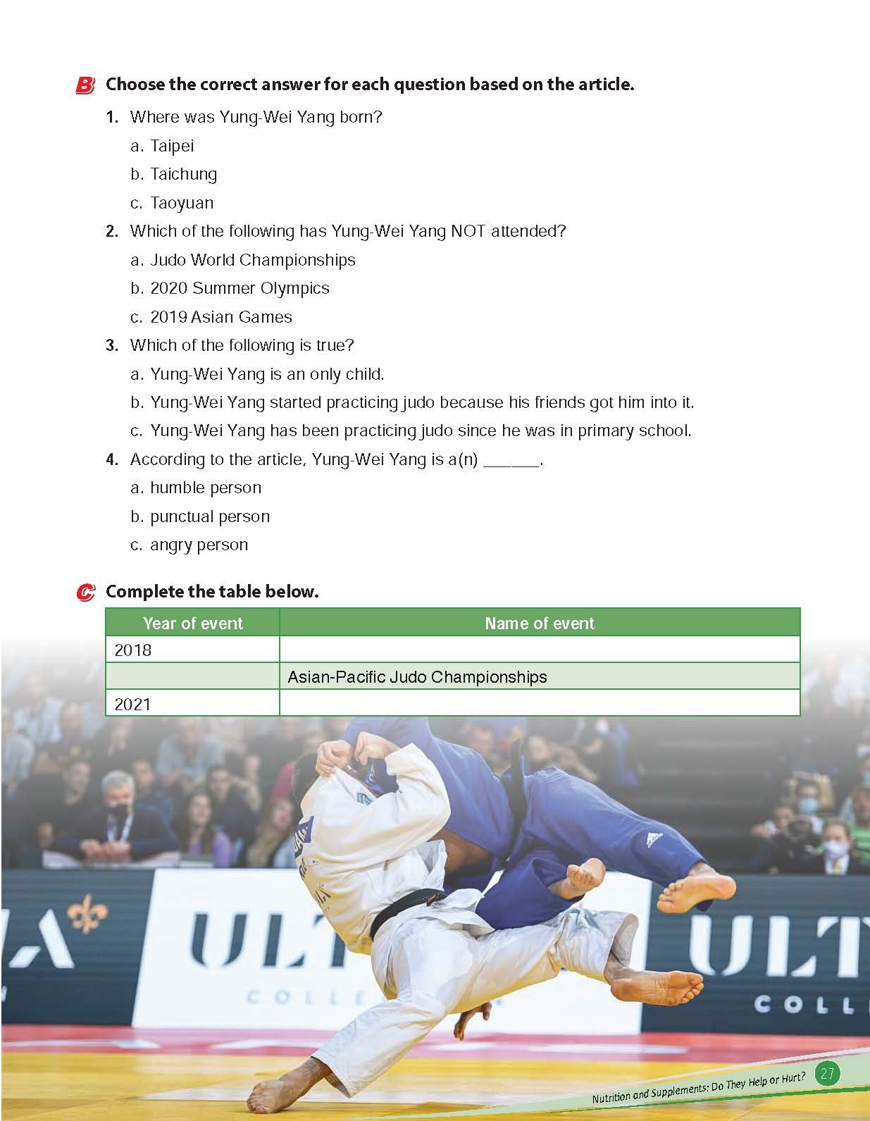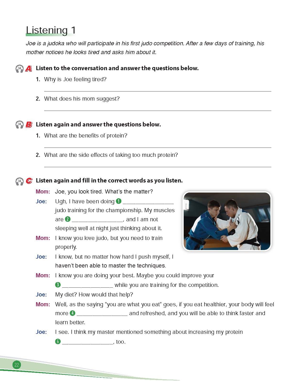 - Realistic and informative reading and listening texts cover a variety of sports-related topics, and are accompanied by a wide range of exercises to test students’ comprehension skills.