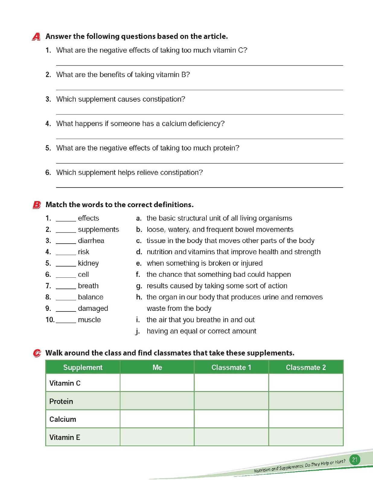 Unit 1 Nutrition and Supplements: Do They Help or Hurt?