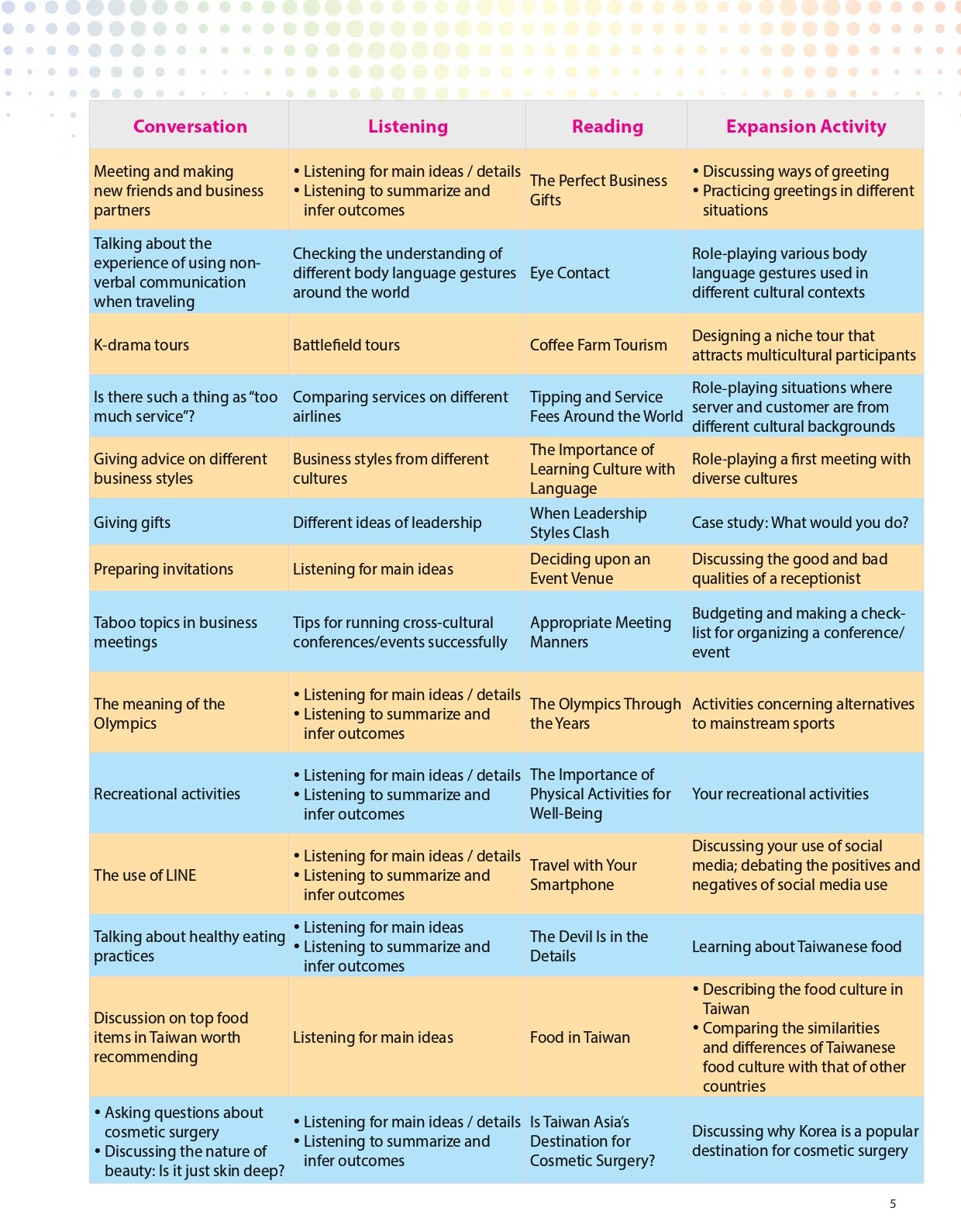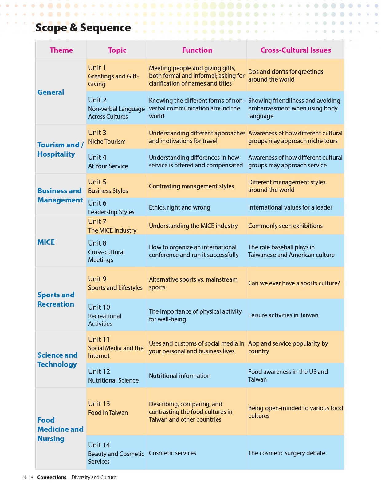 - Cross Cultural Issues: Through this book learners build up culture awareness, culture competence and understanding different cultures.