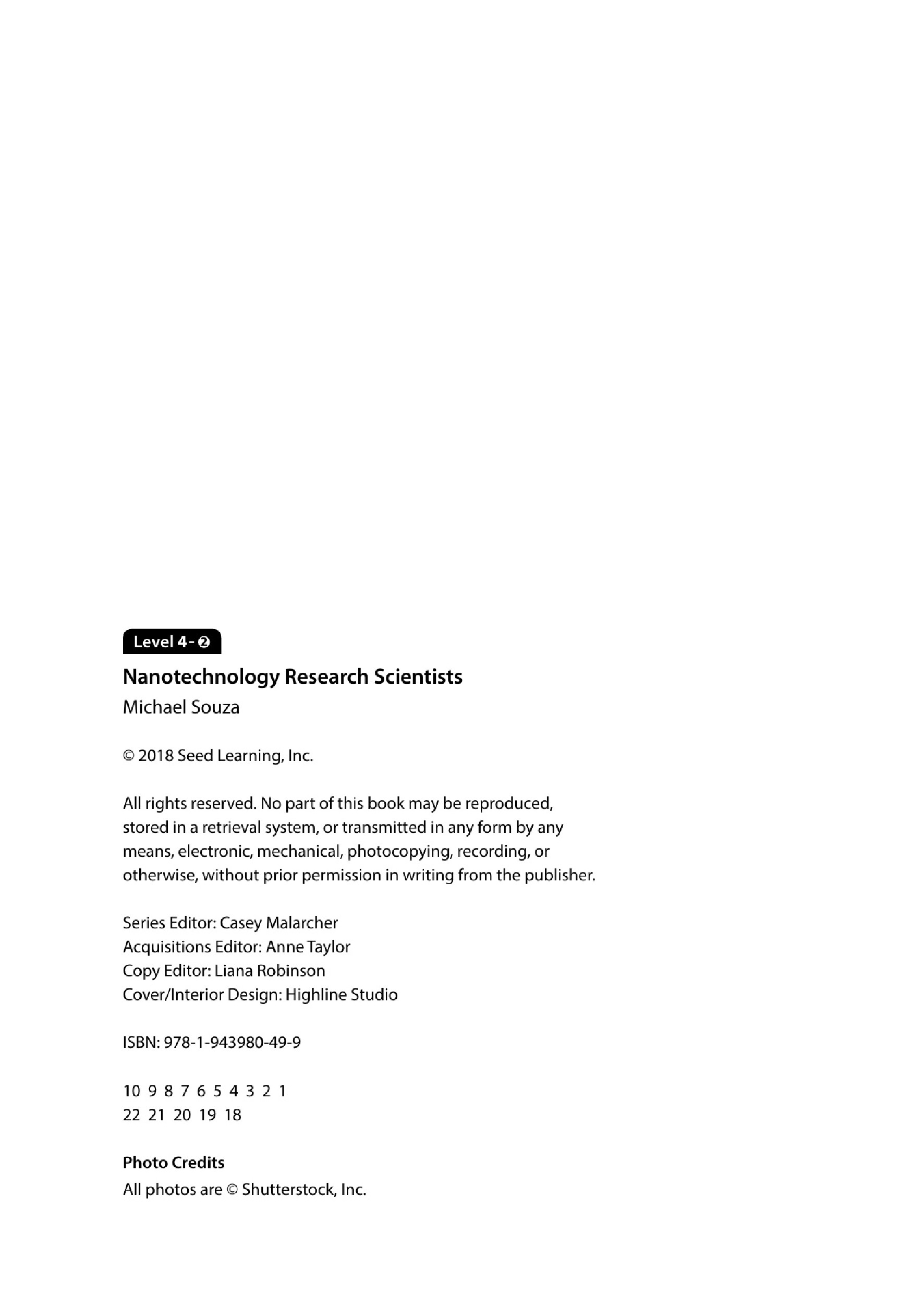 DescriptionSeed Learning’s Future Jobs Readers is a new nonfiction series that explores exciting new careers that may soon become available to young people today. The series explains the type of work these careers will entail along with the kind of study and experience they require. Many of the careers that the series focuses on relate to developing technologies with applications in many different fields. In particular, the series aims to spark the interest of readers in considering the study of STEM-related subject areas that can open up new horizons for the next generation in the workplace.