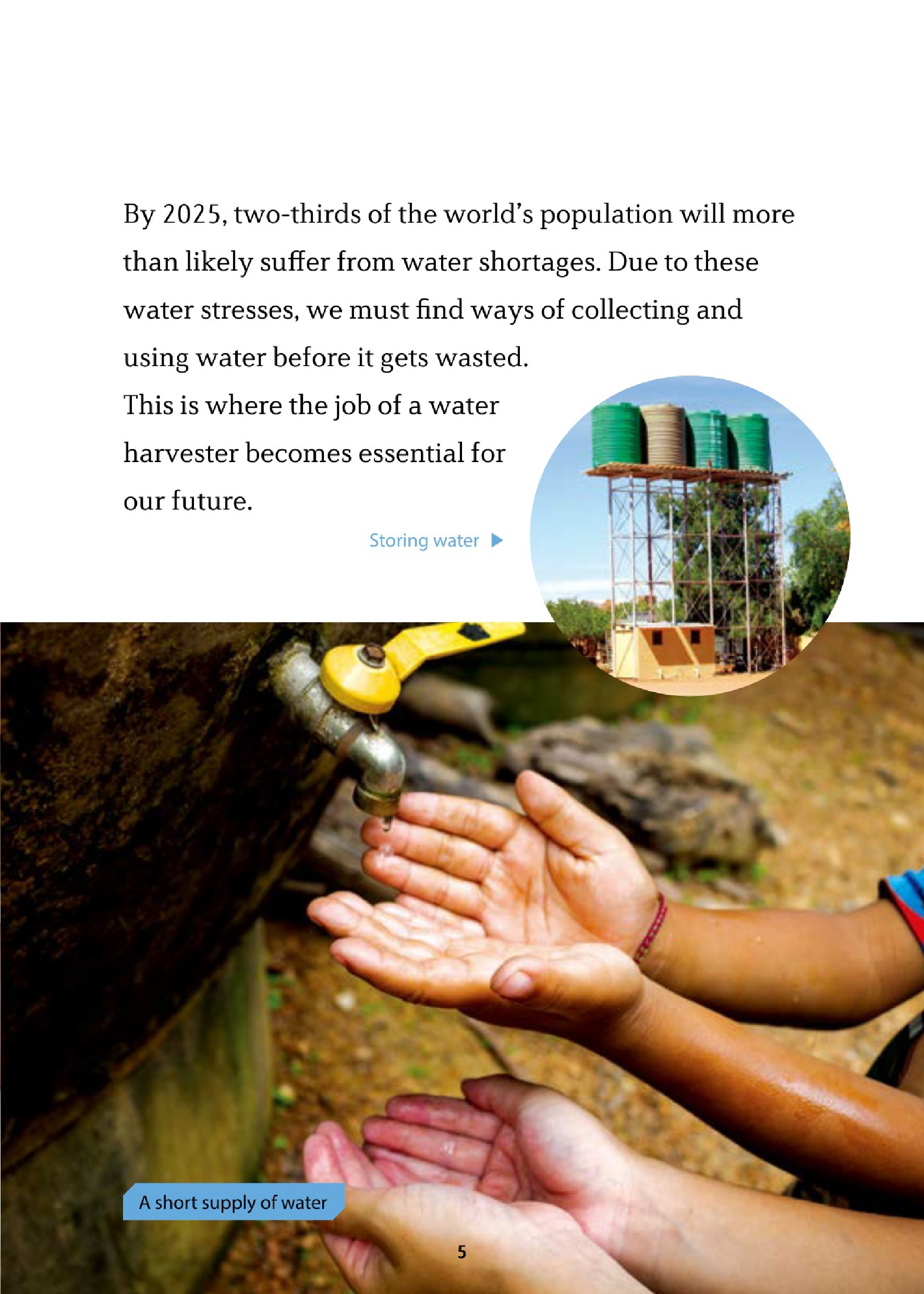 In Water Harvesters, students will learn about a career in which people find, collect, and store water for future use. But how are these jobs changing the future of our world even today?