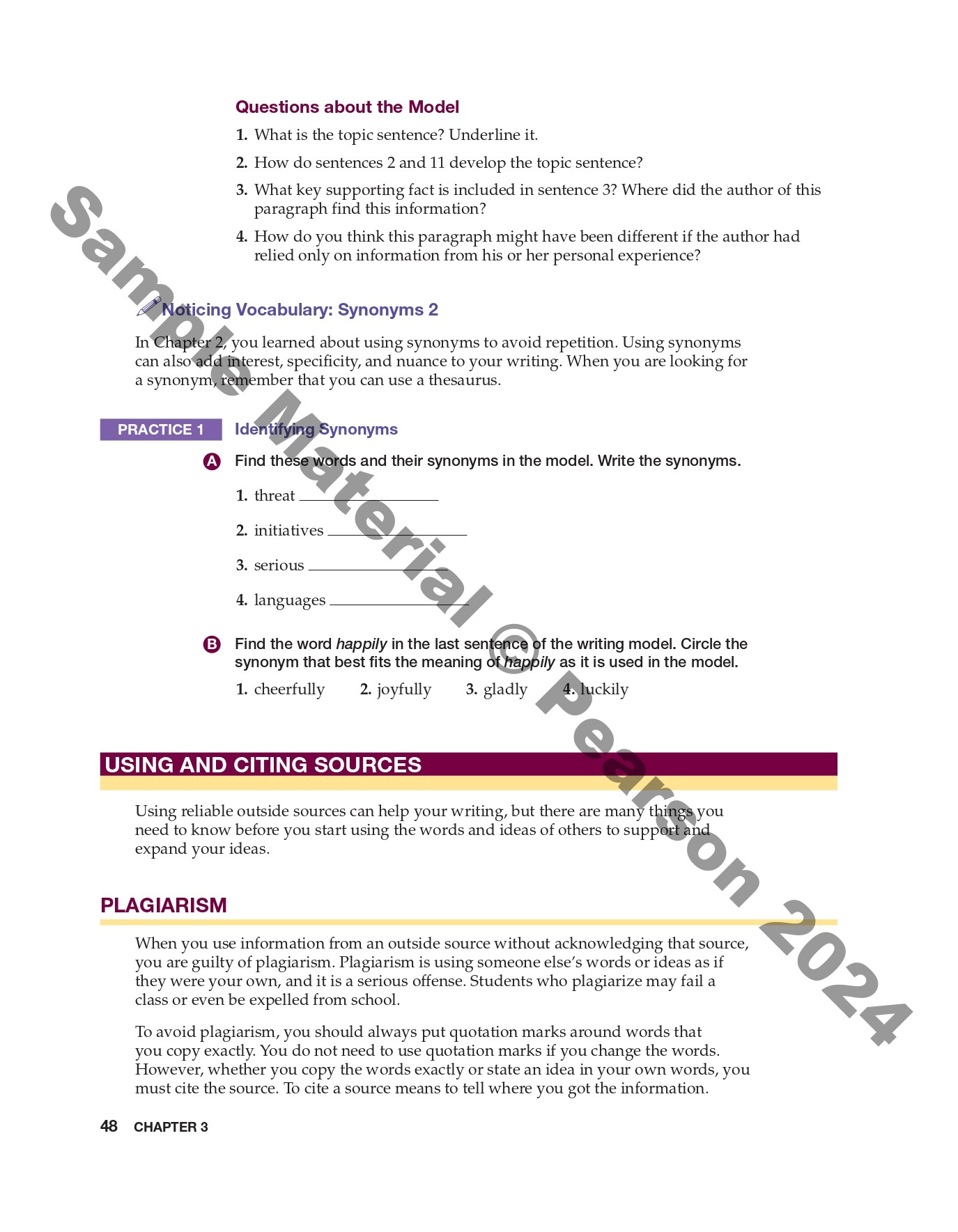 - Vocabulary sections help students develop language awareness and improve the quality of their writing.