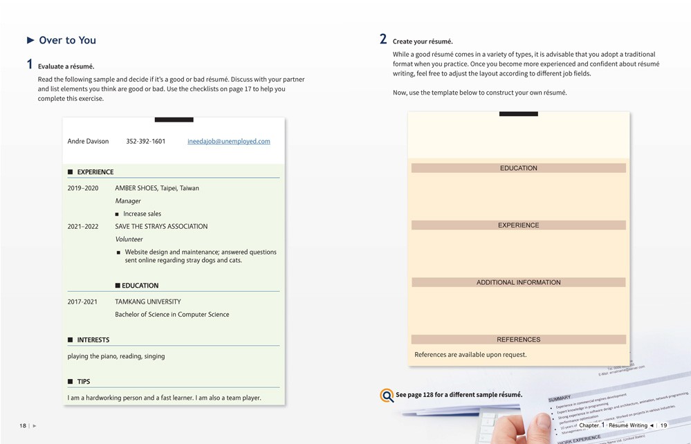 - Over to You—Students are given tasks to apply what they have learned so far in a chapter, which also offers them a chance to ensure their full understanding of this chapter.