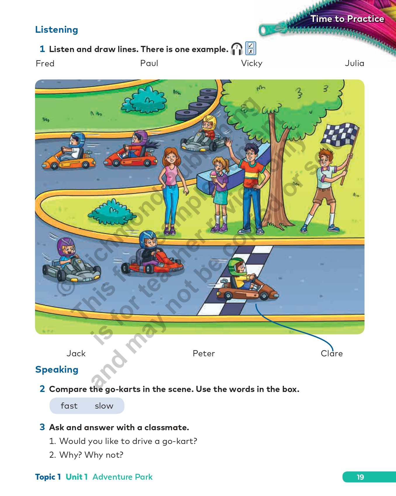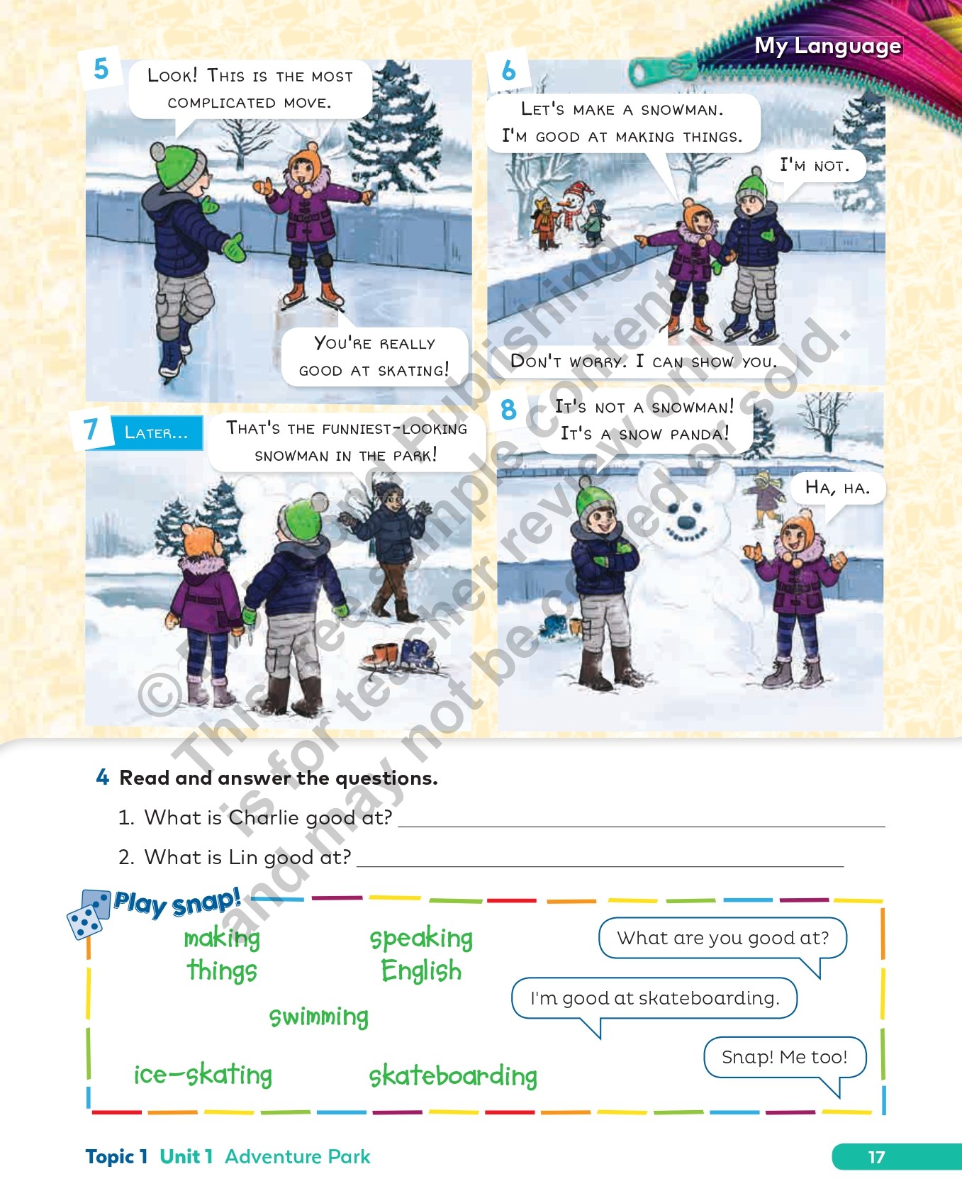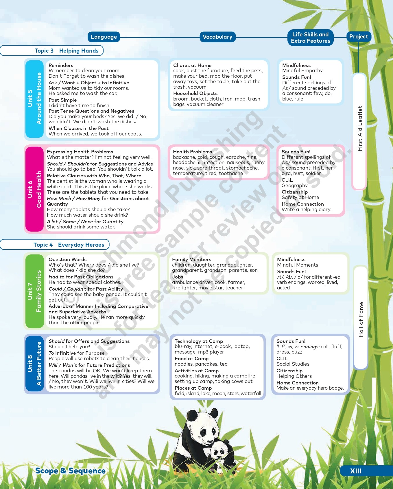 Does what it says on the cover, and more! Packed with activities, students can practice and reinforce language objectives and skills development independently or in class. The first five pages of every unit consolidate the Student’s Book My Words and My Language sections, students can test their memory with the comic strip Good Buddies Quiz, and explore the Reader further with specific activities at the end of each topic. Students develop their projects with helpful guidance from special detachable templates at the back of the book.