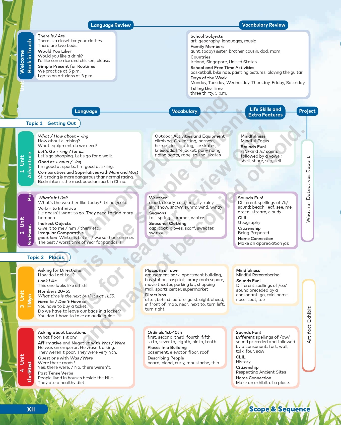 The Teacher’s Guide gives you complete confidence! Step-by-step lesson plans, interleaved with the Student’s Book pages (with superimposed answers) for easy reference, include clear Objectives to help you focus on your students’ specific learning outcomes and show you other materials or course resources you’ll need for class. The Introduction explains the series’ concept and methodology, its components, their features, and the online resources. The Scope and Sequence summarizes the expected course outcomes, and two Activities sections give ideas on how to use the flashcards and posters every unit to present and review language. The Audioscripts and Practice Book Answer Key are at the back of the book.