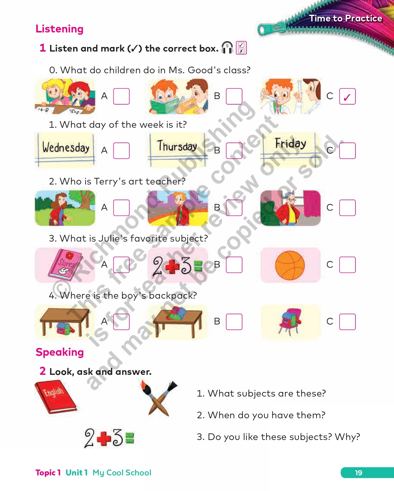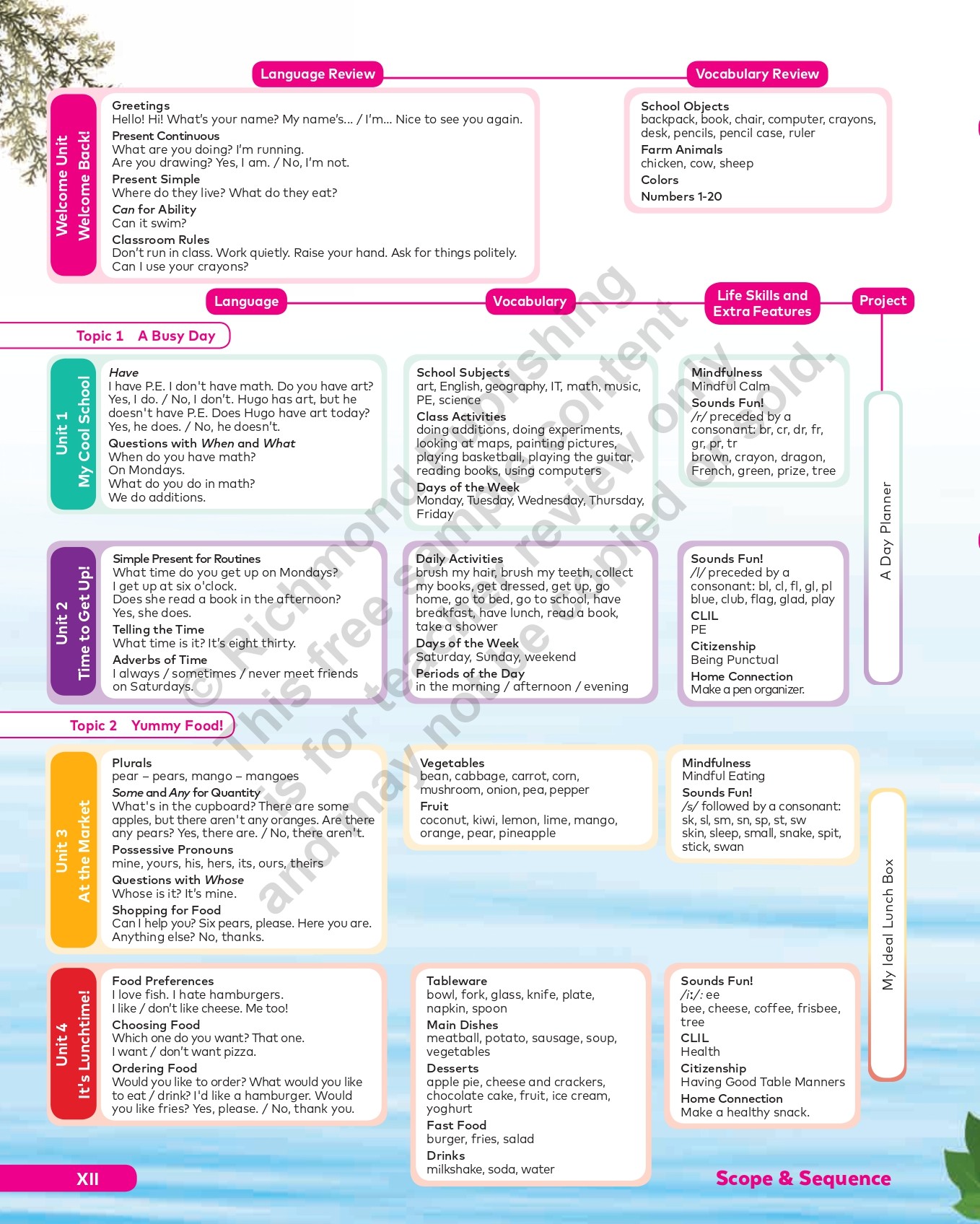 The Teacher’s Guide gives you complete confidence! Step-by-step lesson plans, interleaved with the Student’s Book pages (with superimposed answers) for easy reference, include clear Objectives to help you focus on your students’ specific learning outcomes and show you other materials or course resources you’ll need for class. The Introduction explains the series’ concept and methodology, its components, their features, and the online resources. The Scope and Sequence summarizes the expected course outcomes, and two Activities sections give ideas on how to use the flashcards and posters every unit to present and review language. The Audioscripts and Practice Book Answer Key are at the back of the book.
