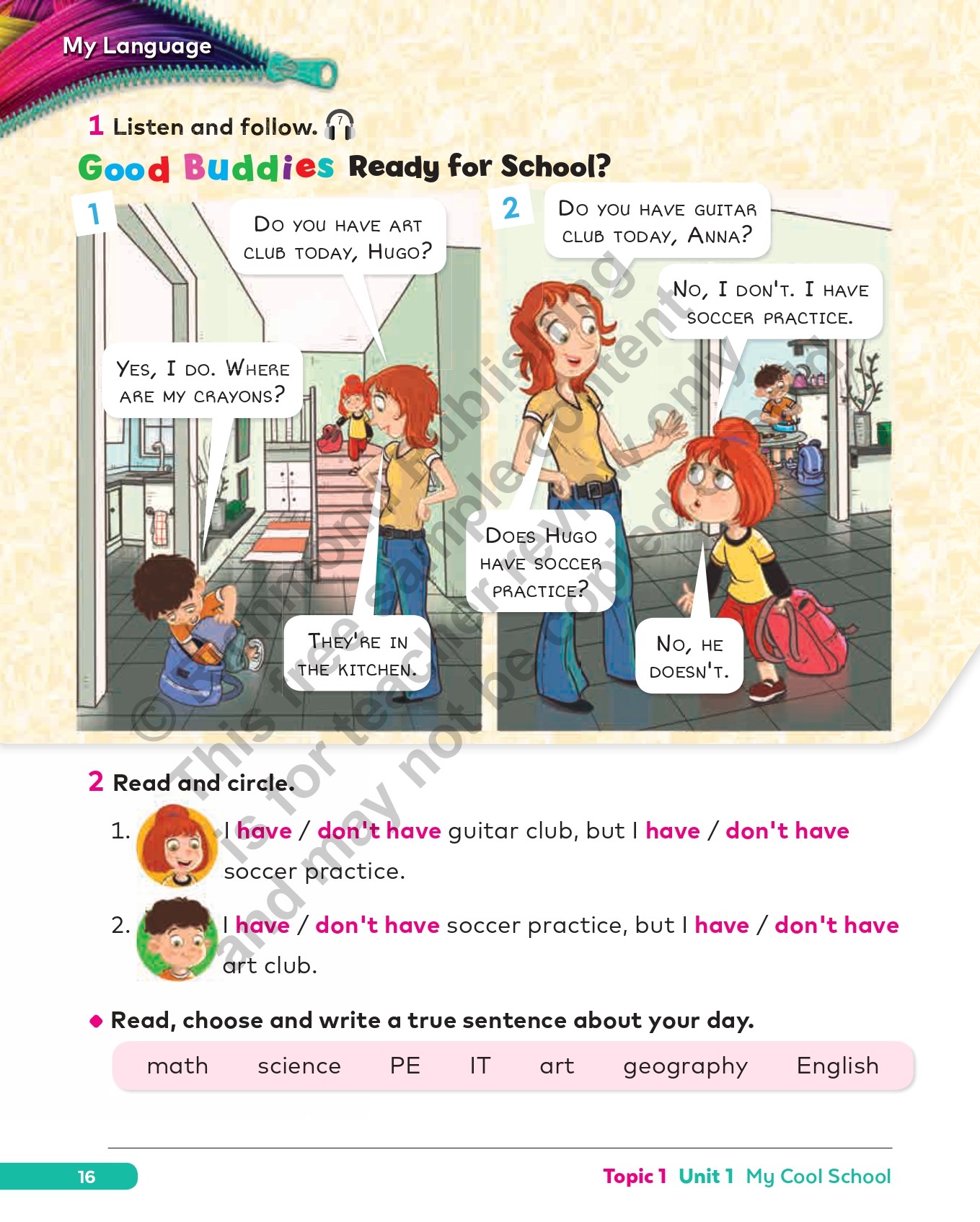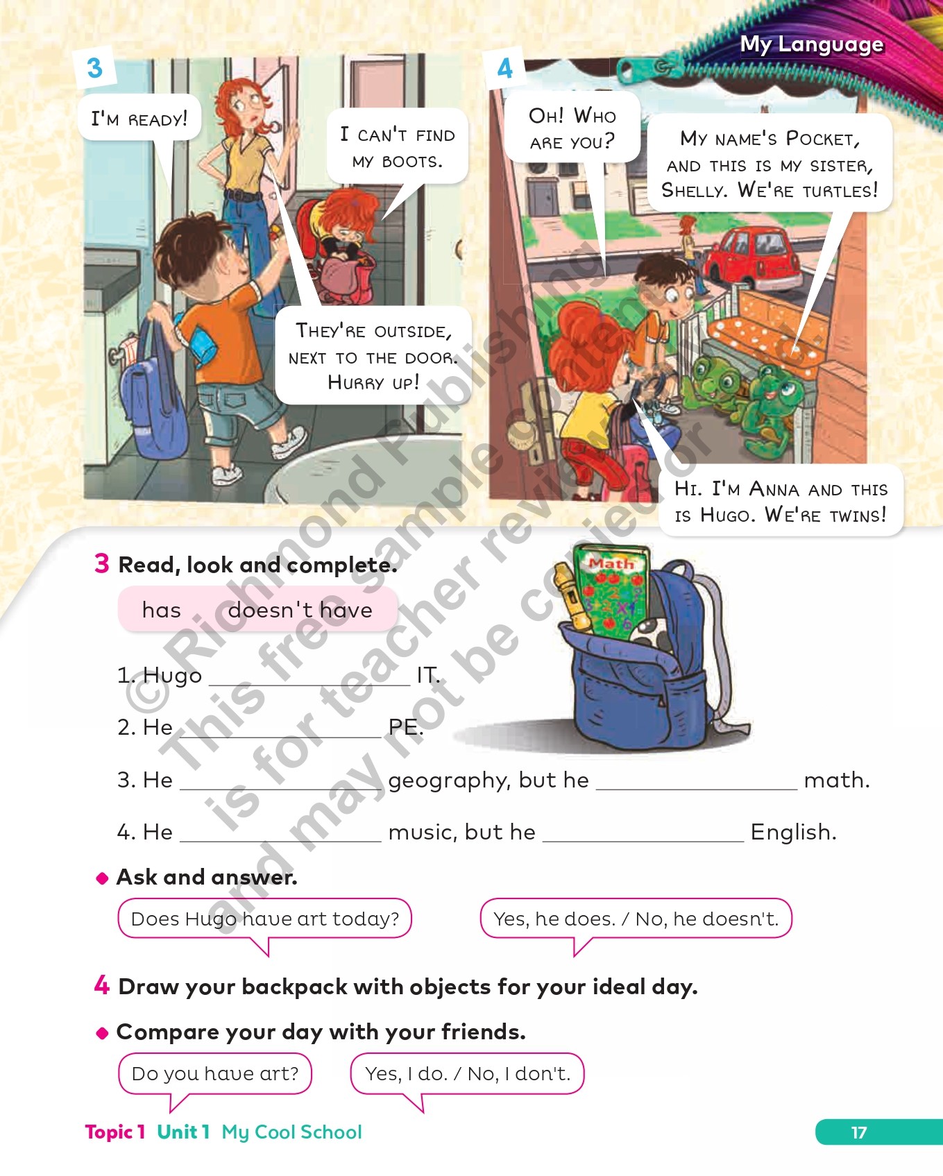 Does what it says on the cover, and more! Packed with activities, students can practice and reinforce language objectives and skills development independently or in class. The first five pages of every unit consolidate the Student’s Book My Words and My Language sections, students can test their memory with the comic strip Good Buddies Quiz, and explore the Reader further with specific activities at the end of each topic. Students develop their projects with helpful guidance from special detachable templates at the back of the book.