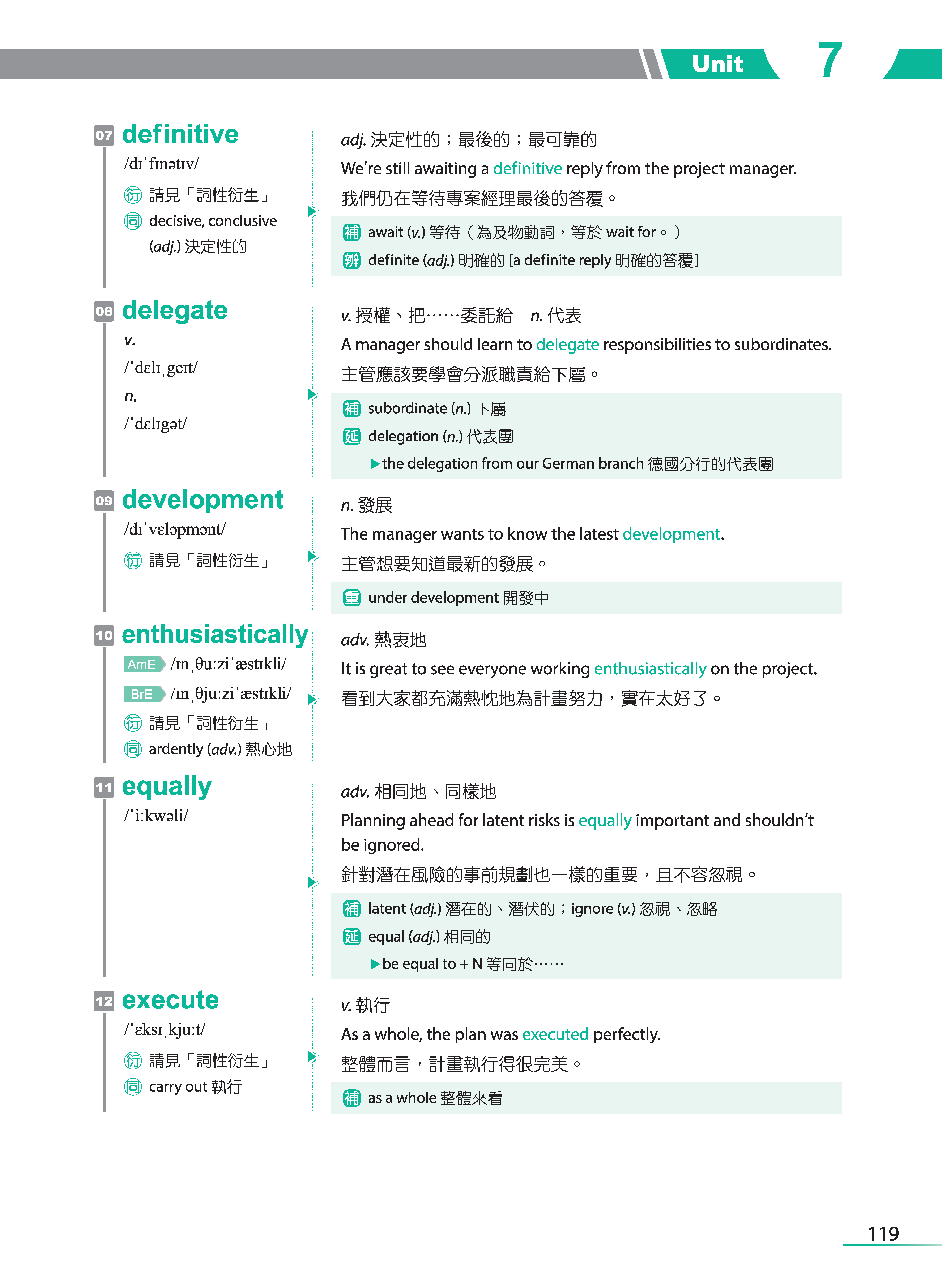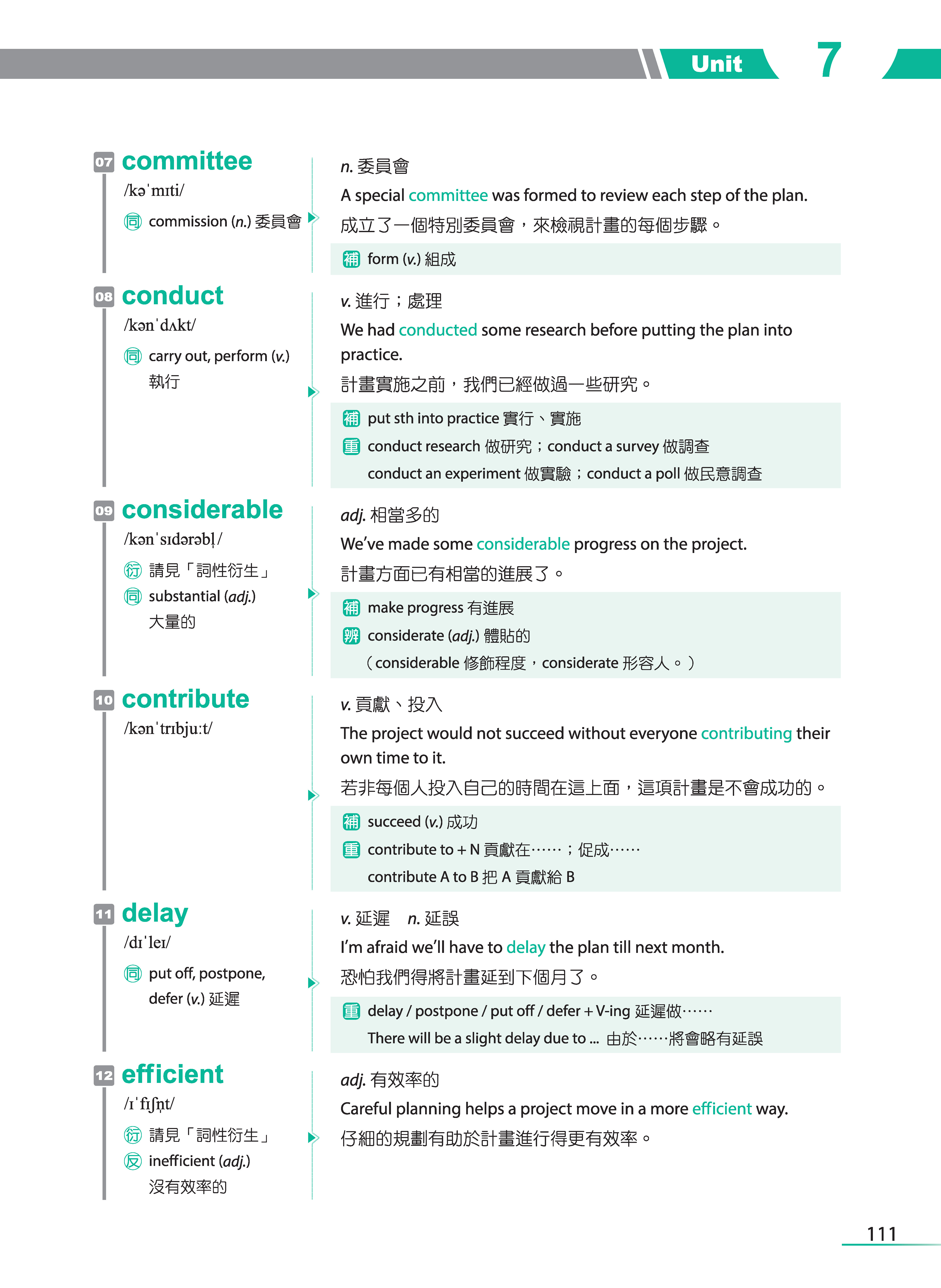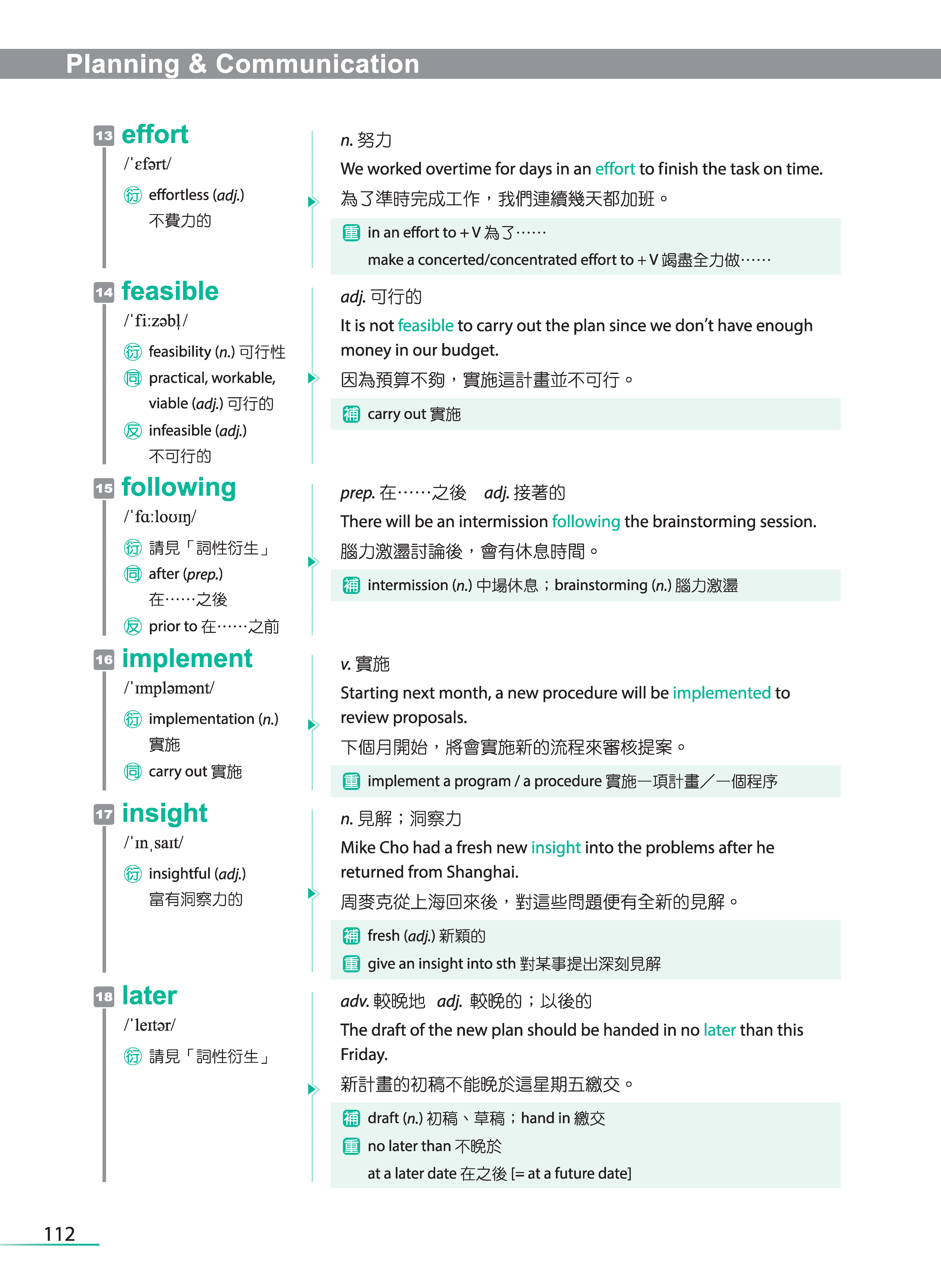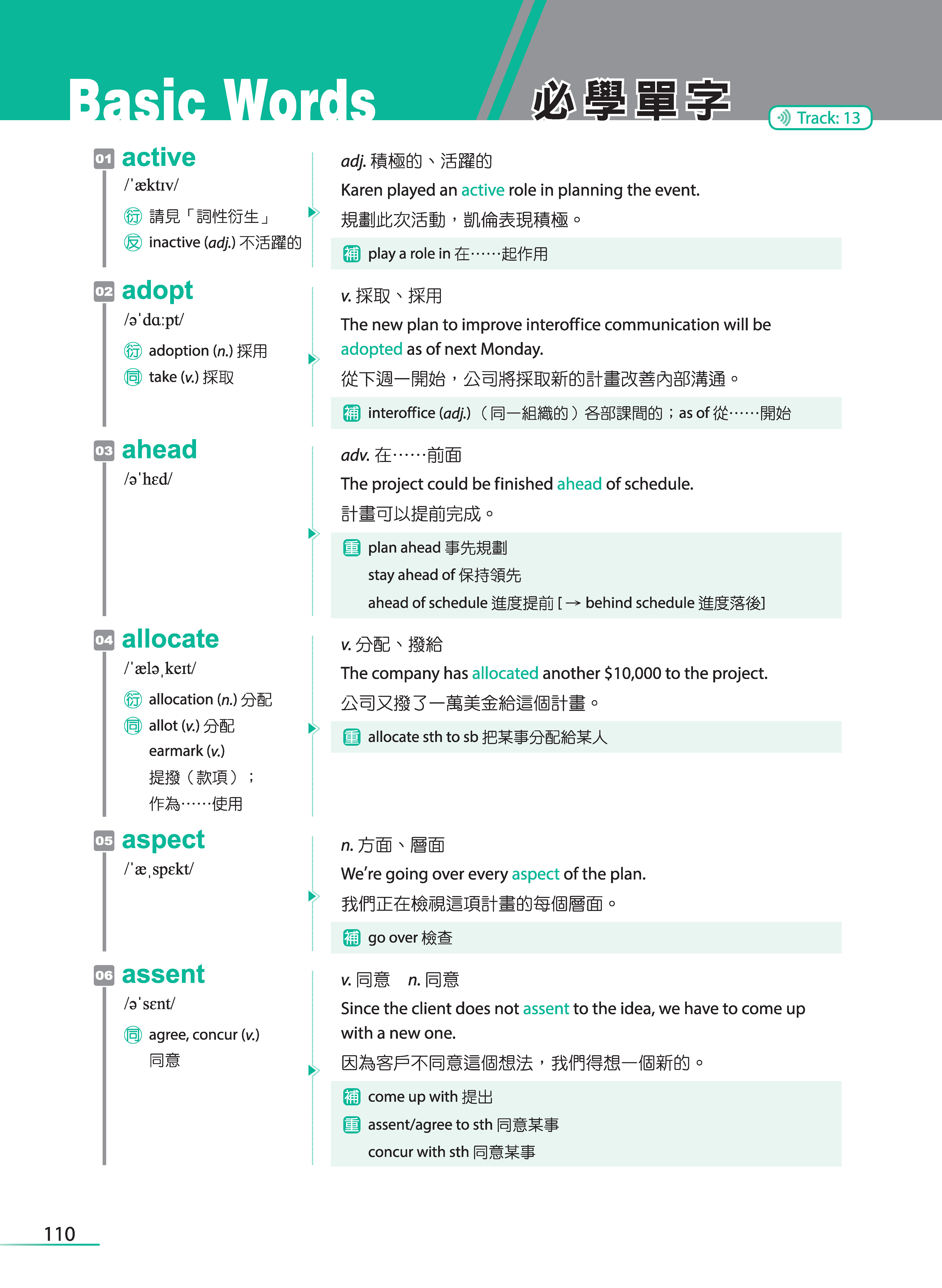 只是,背單字對很多人而言,真的是很痛苦的一件事,這點我比較承認。但不管學什麼語言,包含自己的母語,單字量的累積其實是必經的過程,具備了基本的詞彙量之後,才能看得更多、學得更多,而這也是我在規劃這本單字書的架構時,所抱持的想法。希望初、中階的學習者能將每個單元的必學單字都掌握了之後,再學習追分單字的部分;而高階的學習者可從追分單字的部分著手,知道自己還有哪些單字是不懂的。