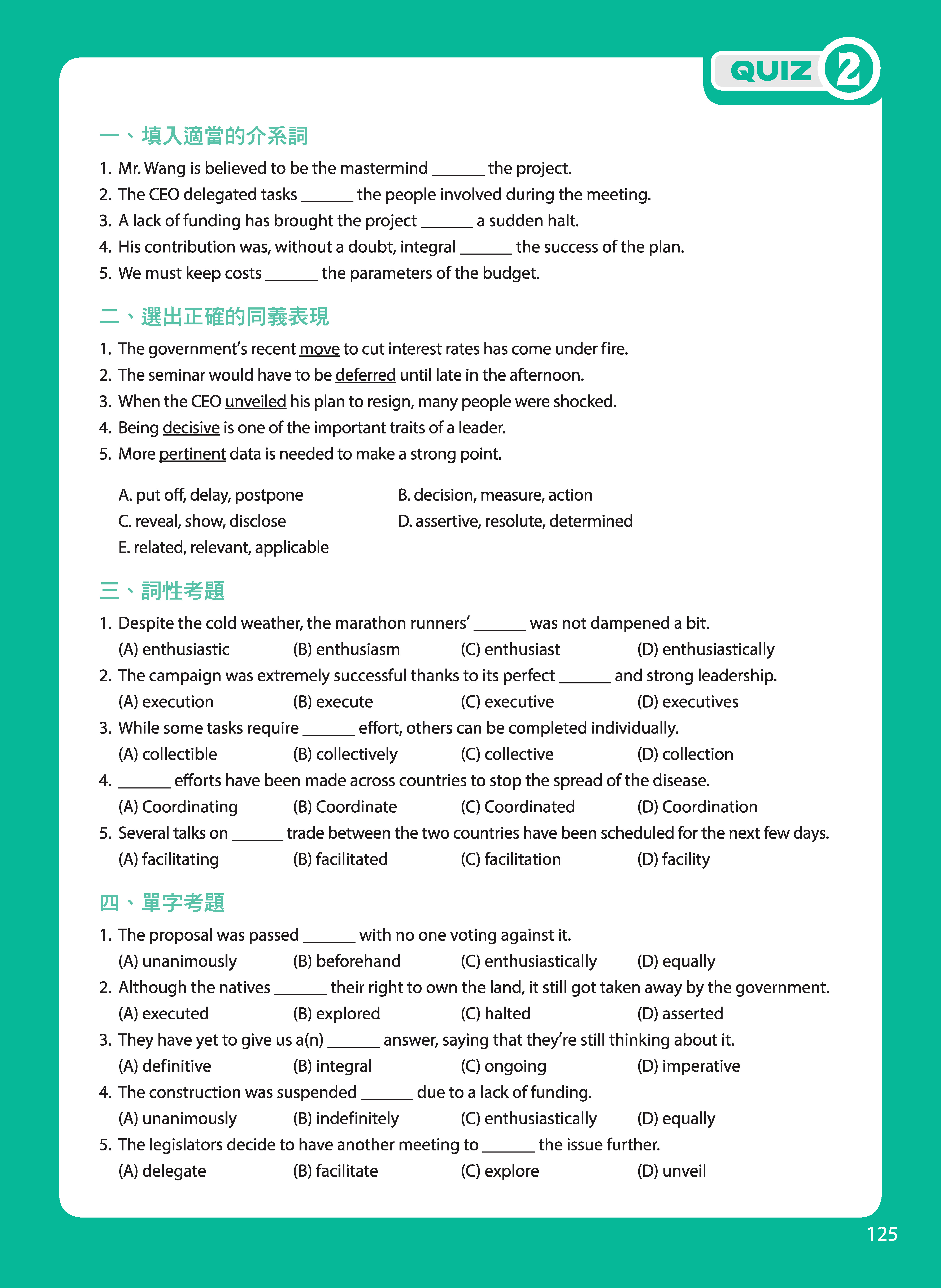 完整列出單字常考搭配,和詞性考題高頻用字,在有限的準備時間內提高學習效果 - 考前重點練習
