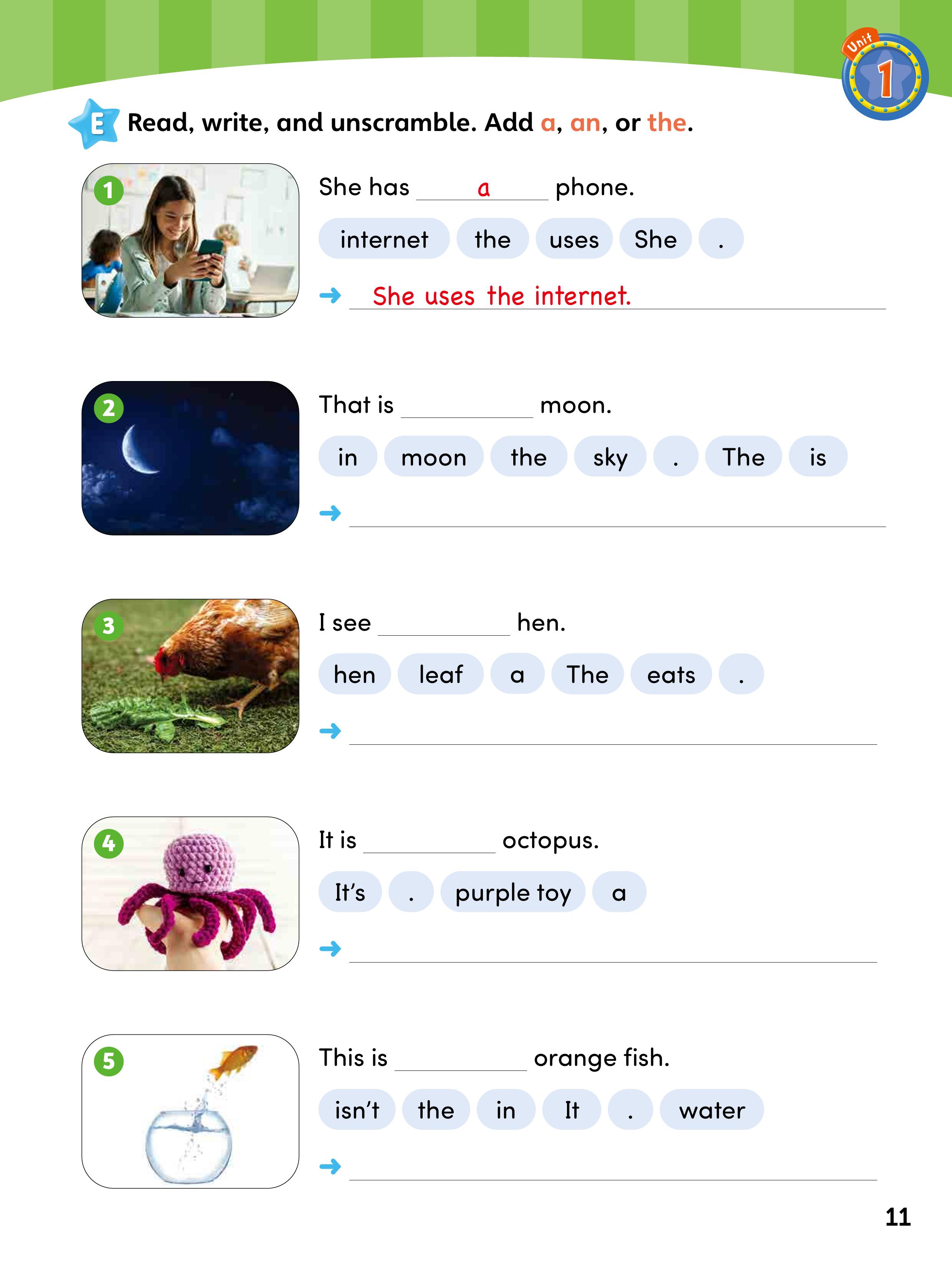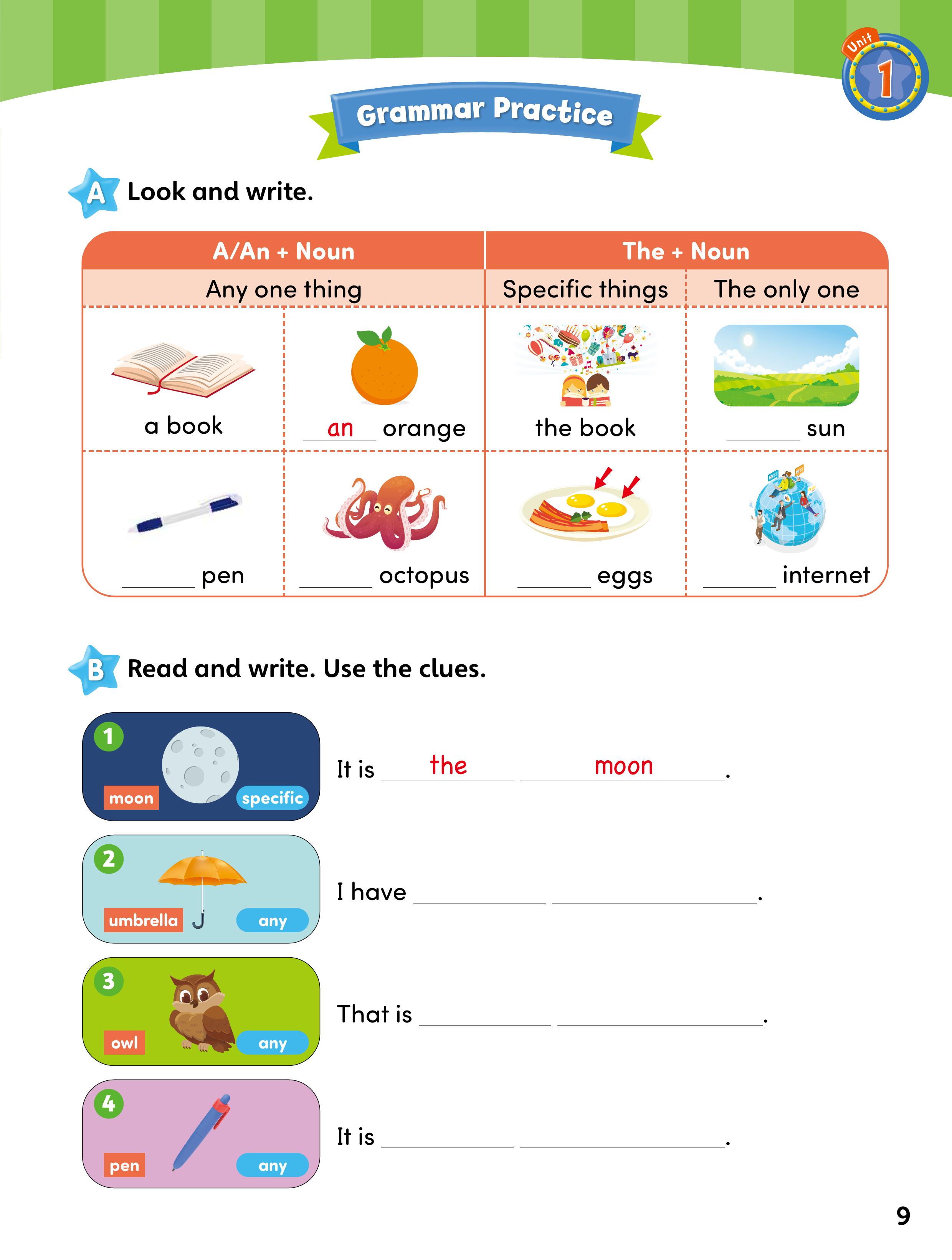 • Activities build from controlled practice to guided writing, supporting step-by-step sentence formation. Practice tasks progress in complexity to reinforce understanding and improve accuracy.