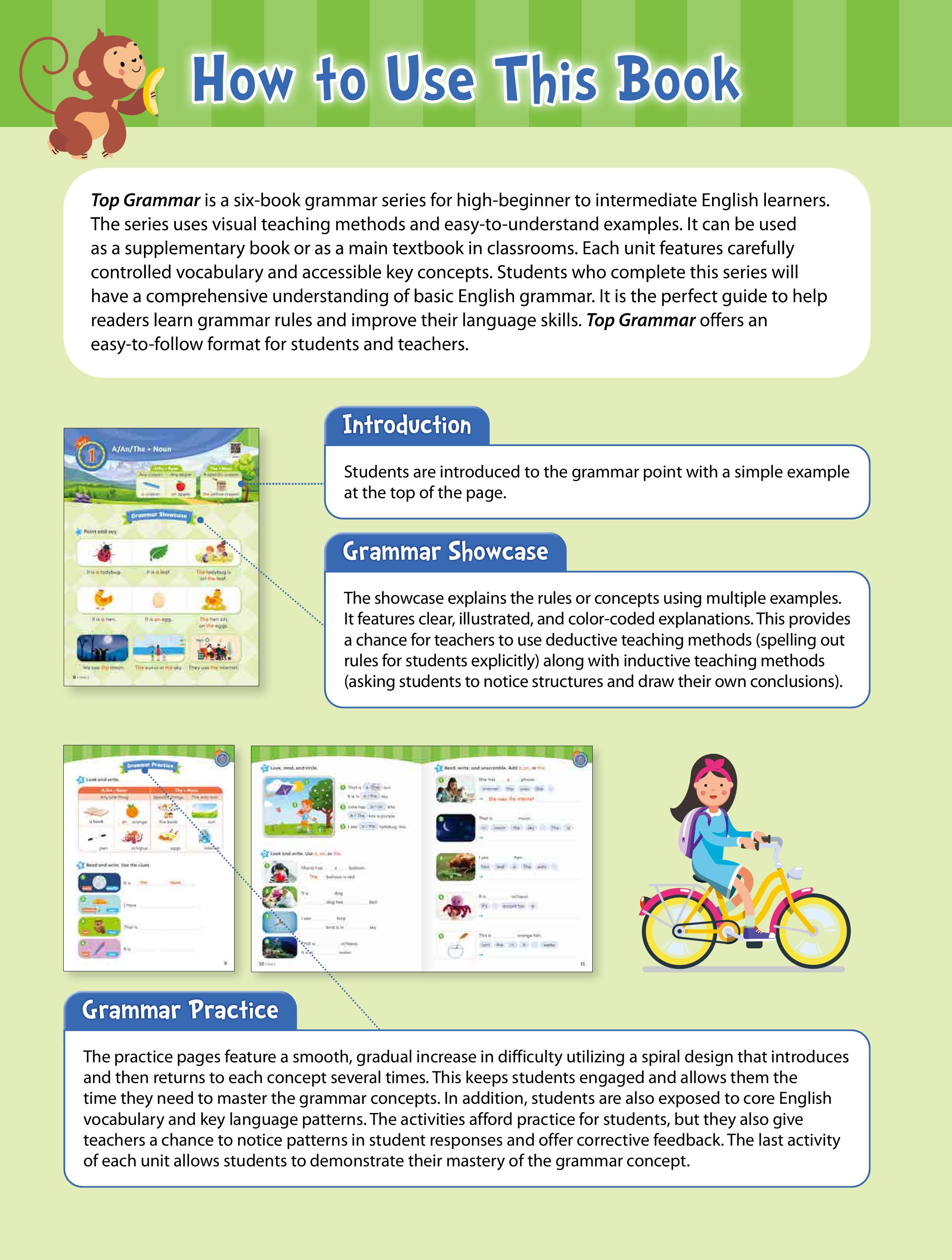Top Grammar is a six-level grammar series designed for early beginner to intermediate English learners. The series provides a clear and systematic approach to grammar learning, helping learners build a strong foundation and gradually develop more advanced language skills.