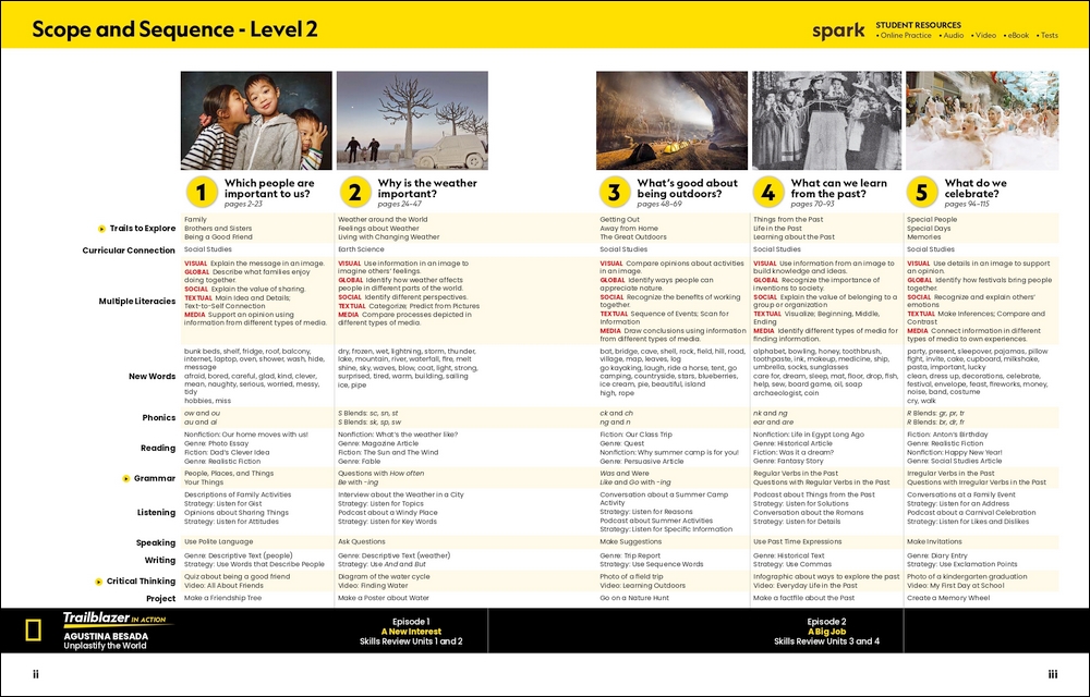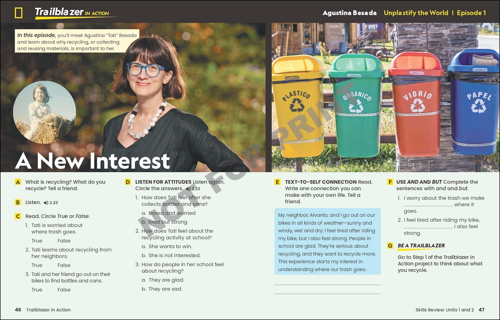 The Trailblazer Workbook provides further opportunities for students to work with the language, concepts, and perspectives from the Student's Book. With unique fiction and nonfiction texts in each unit and extended practice opportunities for vocabulary, grammar, writing, and multiple literacies, the Workbook offers: